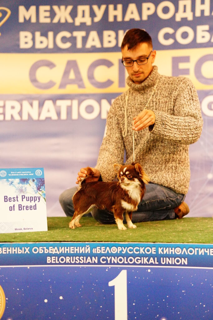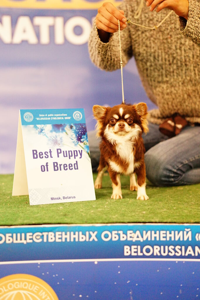 Наши собаки регулярно участвуют в выставках собак в Беларуси и за ее пределами. Выпускники нашего питомника показывают высокие результаты на выставках в Европе, Израиле, США… . В конкурсе ТОП собака Беларуси, организованным Белорусским Кинологическим Объединением наши чихуахуа ежегодно становятся лучшими представителями породы в Беларуси.